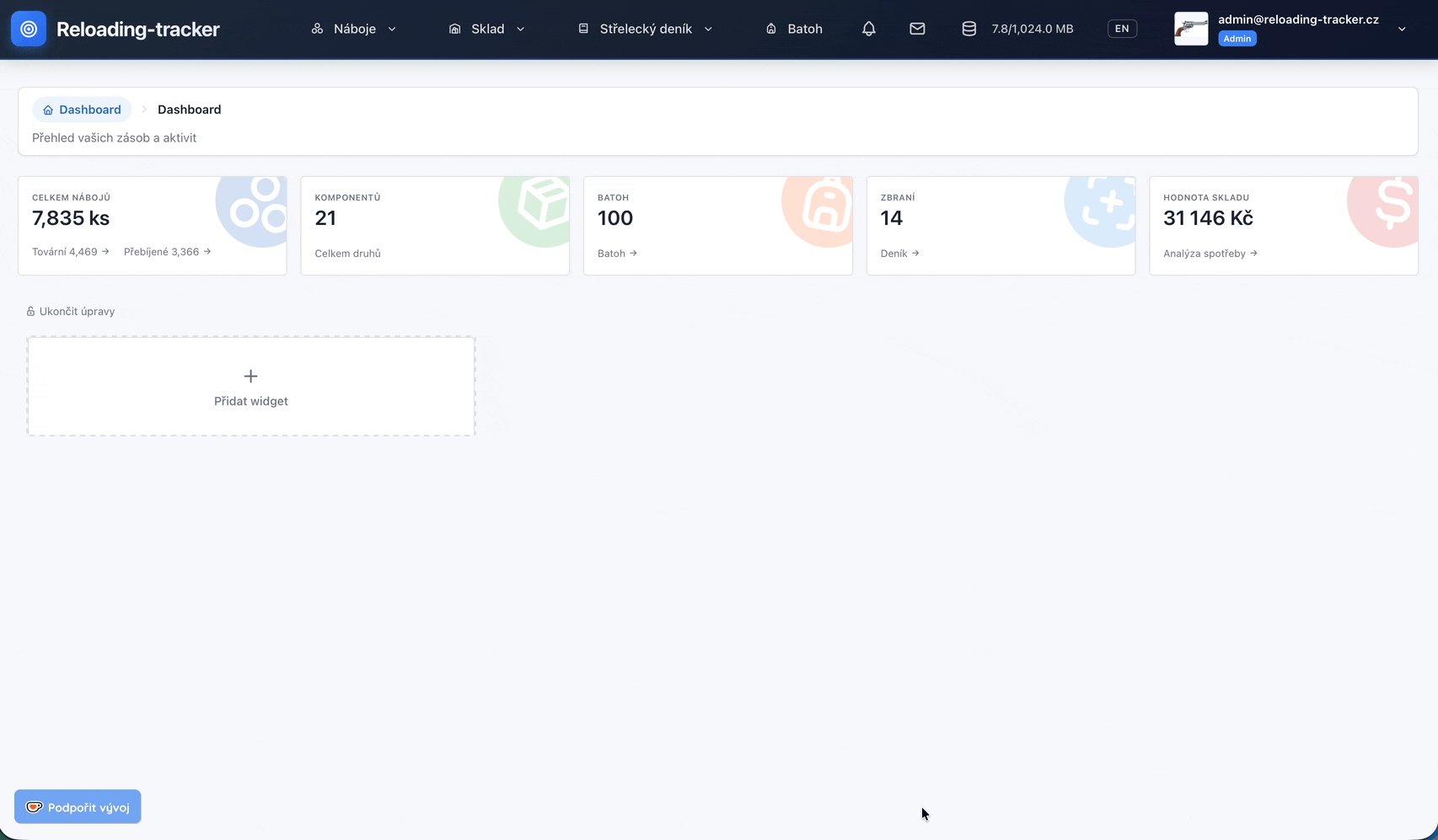 Pro ty, kteří chtějí mít data u sebe. Připravený Docker instalátor, se kterým máte vlastní instanci Reloading Trackeru nahozenou do 30 sekund. Stačí spustit jeden skript.