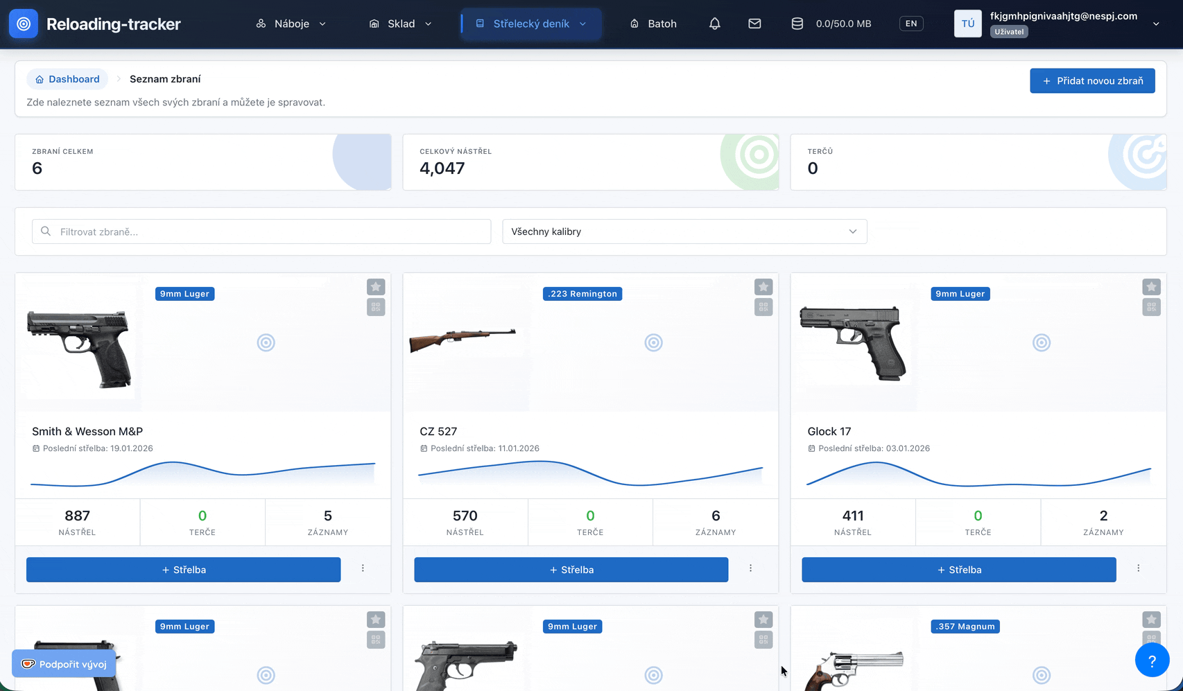 Historie nástřelu, čištění a údržby. Vše v jednom přehledném seznamu přístupném odkudkoliv.