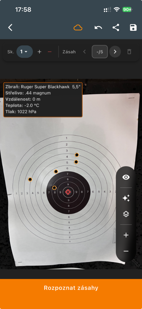 Přímo na střelnici si mobilem vyfotíte terč a aplikace automaticky rozpozná zásahy a spočítá rozptyl v MOA.
